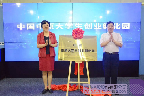 河南省人民政府副秘書長王夢飛(右)與清華大學(xué)校務(wù)委員會副主任韓景陽為中國中原大學(xué)生創(chuàng)業(yè)孵化園揭牌