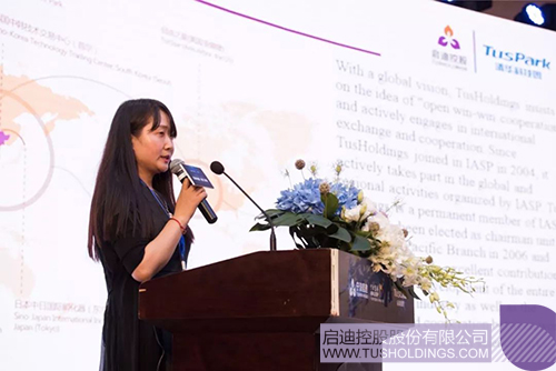 啟迪控股國際合作經(jīng)理、國際科技園及創(chuàng)新區(qū)域協(xié)會(IASP) 中國辦公室副主任尚薇作主題演講